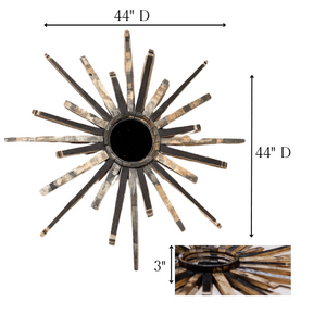 Designed in a charming sunburst style, with alternating and staggered lengths of unique, genuine Pappy Van Winkle Bourbon Barrel staves, the mirror reflects complexity, depth, and movement. Displaying the beauty hidden within the barrel, the Staveburst Mirror has an Art Deco vibe that incorporates the barrel staves in a gorgeous mid-century modern-inspired design.