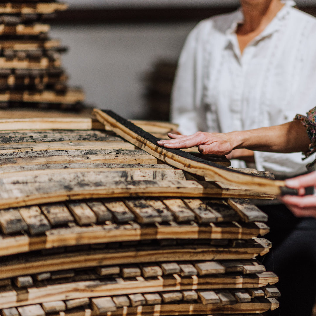 Resembling the rays of Kentucky sunshine, so necessary for developing the character of our family’s bourbon, bursting through with signature beauty and natural geometrical design, it is a story that spans decades and reflects the legacy, dedication, artistry, craftsmanship, and the bourbon that represents it all. Just as no two barrel staves are alike, each mirror is entirely unique and individually handcrafted by Jason Cohen in our Pappy & Company Woodshop.