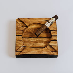 Featuring four elegantly carved cigar rests in each corner with a center ashtray, each Bourbon Barrel Stave Ashtray is handcrafted from retired Pappy Van Winkle Bourbon barrels, reflecting heritage and legacy in each detail. Each unique ashtray is crafted with purpose to showcase the nature of the individual barrel stave, proudly displaying the visible markings of the recently completed bourbon aging process. Just as the barrel recently held the bourbon as it aged, developing the layers of signature character and flavor, it now gently cradles your cigar as you sip.