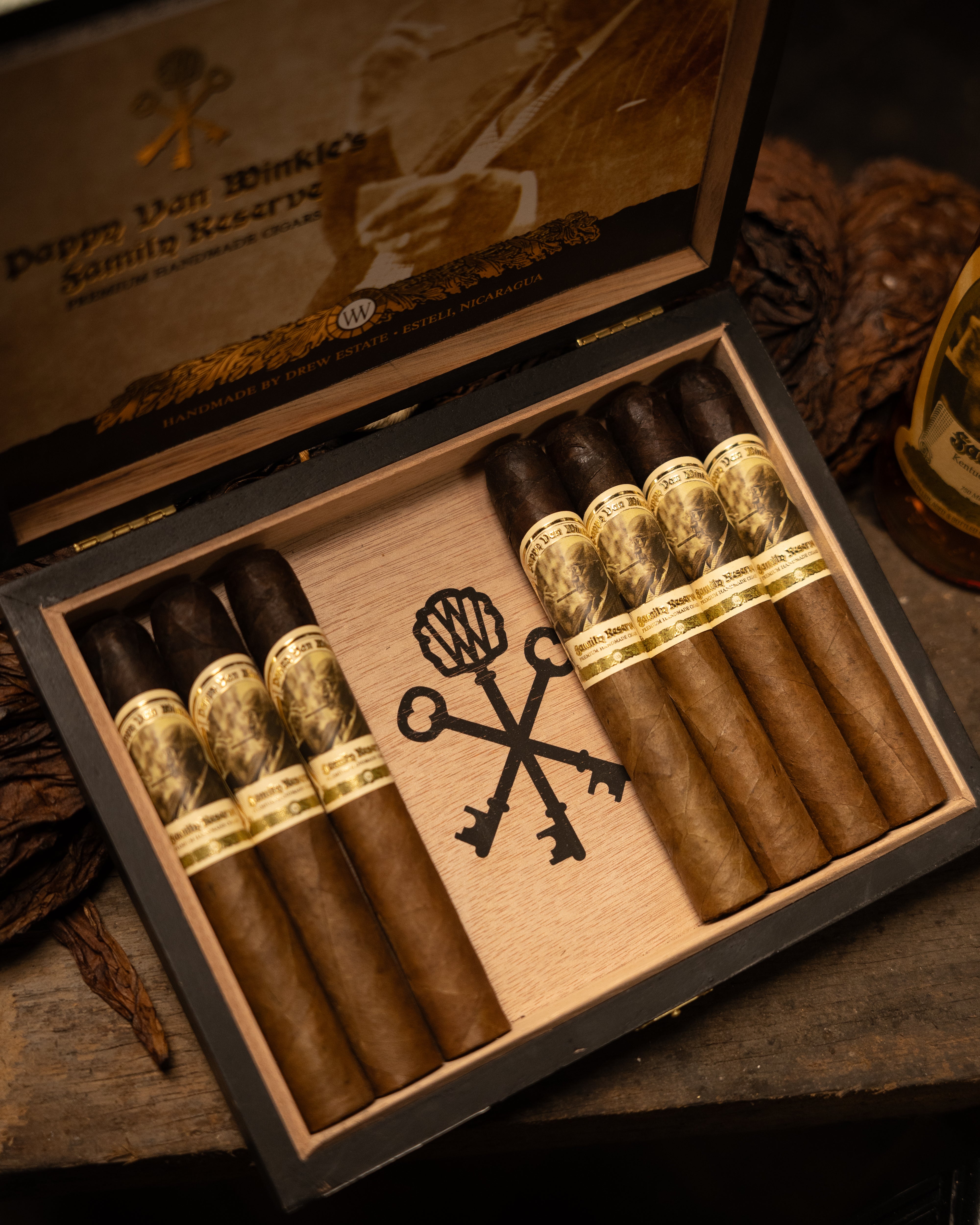 Experience the exclusive Pappy Van Winkle Premium Cigar Collection – a partnership between Pappy & Company and master cigar experts, Drew Estate. Two signature blends are available in a variety of vitolas. Handcrafted in small batches in Estelí, Nicaragua, our cigars reflect the legacy and flavor of Pappy Van Winkle bourbon.