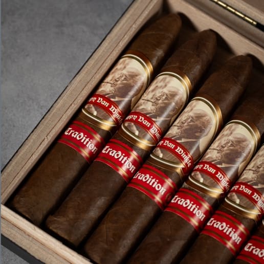 Our Pappy Van Winkle Tradition Blend was selected by Julian Van Winkle, III, to represent the legacy of Pappy Van Winkle Bourbon. A full-bodied, fragrant smoke, this is a classic everyday cigar with balance and depth, hand-crafted in the traditional Cuban “entubado” style to perfectly pair with an American Whiskey.