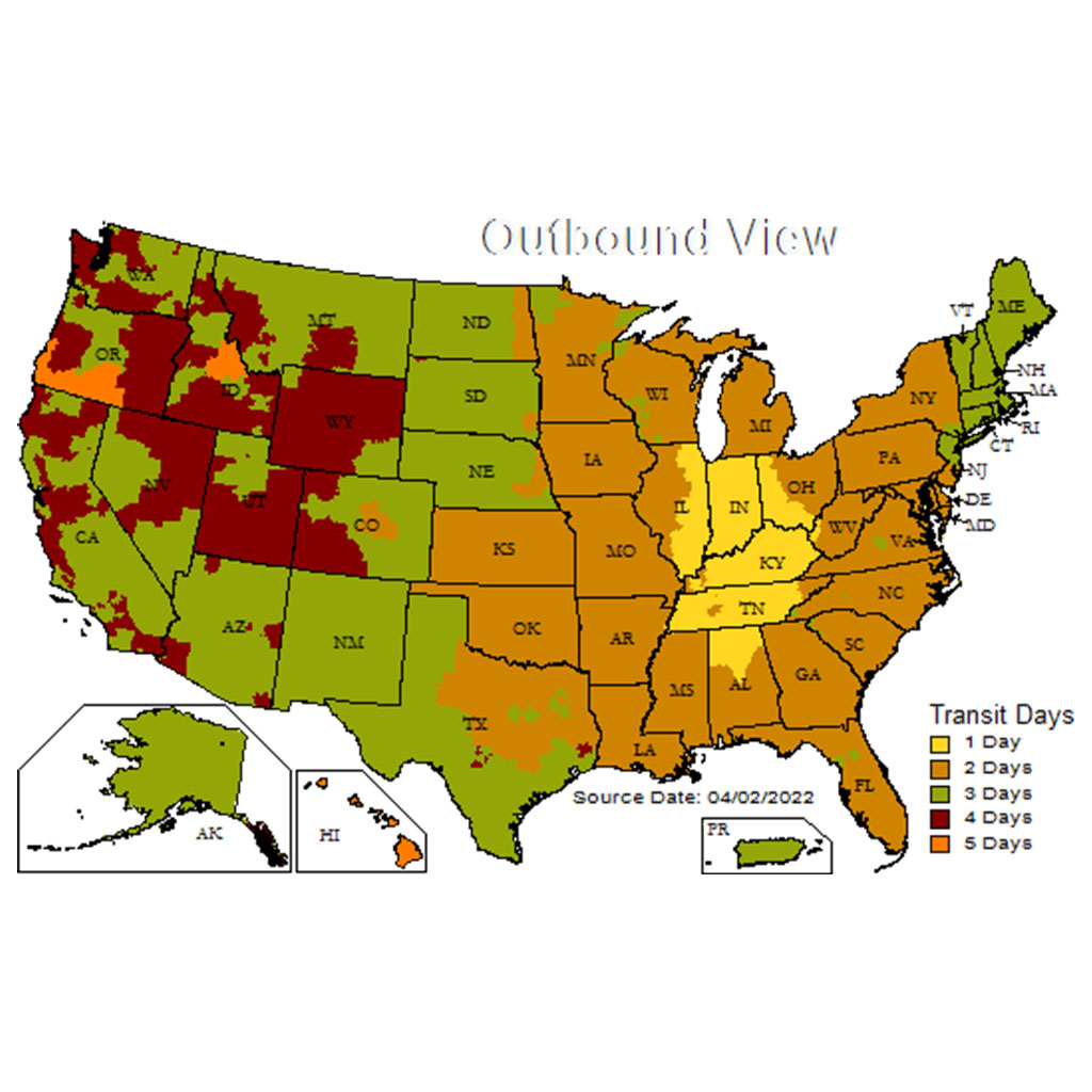 Service Type: 85% of zip codes are 3 days or less from our location. Some locations up to 5 days.