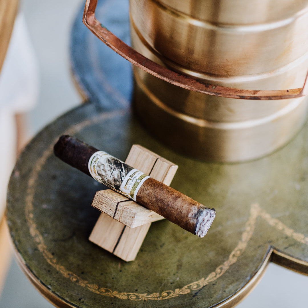 X marks the spot. Lay claim to your luxury with a rustic cigar rest crafted from genuine retired Pappy Van Winkle Bourbon barrels. Just as our collection of Pappy Van Winkle Bourbon Barrel Fermented and Tradition cigars are reflective of our heritage, each interlocking cigar rest is a unique piece of bourbon history.