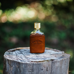 Once aged to perfection, bourbon is transferred to glass bottles to preserve the deep, rich, and layered flavors and character that have been carefully developed after years asleep in an oak barrel. In a similar fashion, this grown-up Family Reserve flask is crafted from full-bodied, break-resistant glass, cloaked in full-grain English Saddle leather embossed with the iconic Pappy Van Winkle Family Reserve logo. It is finished with a solid brass cap and funnel, providing classic, elevated functionality, convenience, and mess-free pouring.