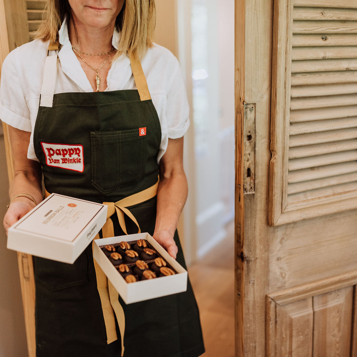 Made with Hedley & Bennett, a fellow woman-owned business with a similar penchant for intentional design married with aesthetic appeal, our essential apron is designed in our neutral, signature olive green with an embroidered retro-style Pappy Van Winkle patch. With thoughtful details like a red towel loop, adjustable neck strap in complementary cream and gold, gold waist ties, and ample pocket space, this is the apron for discerning home chefs who appreciate good food, flavor, and fun in the kitchen.