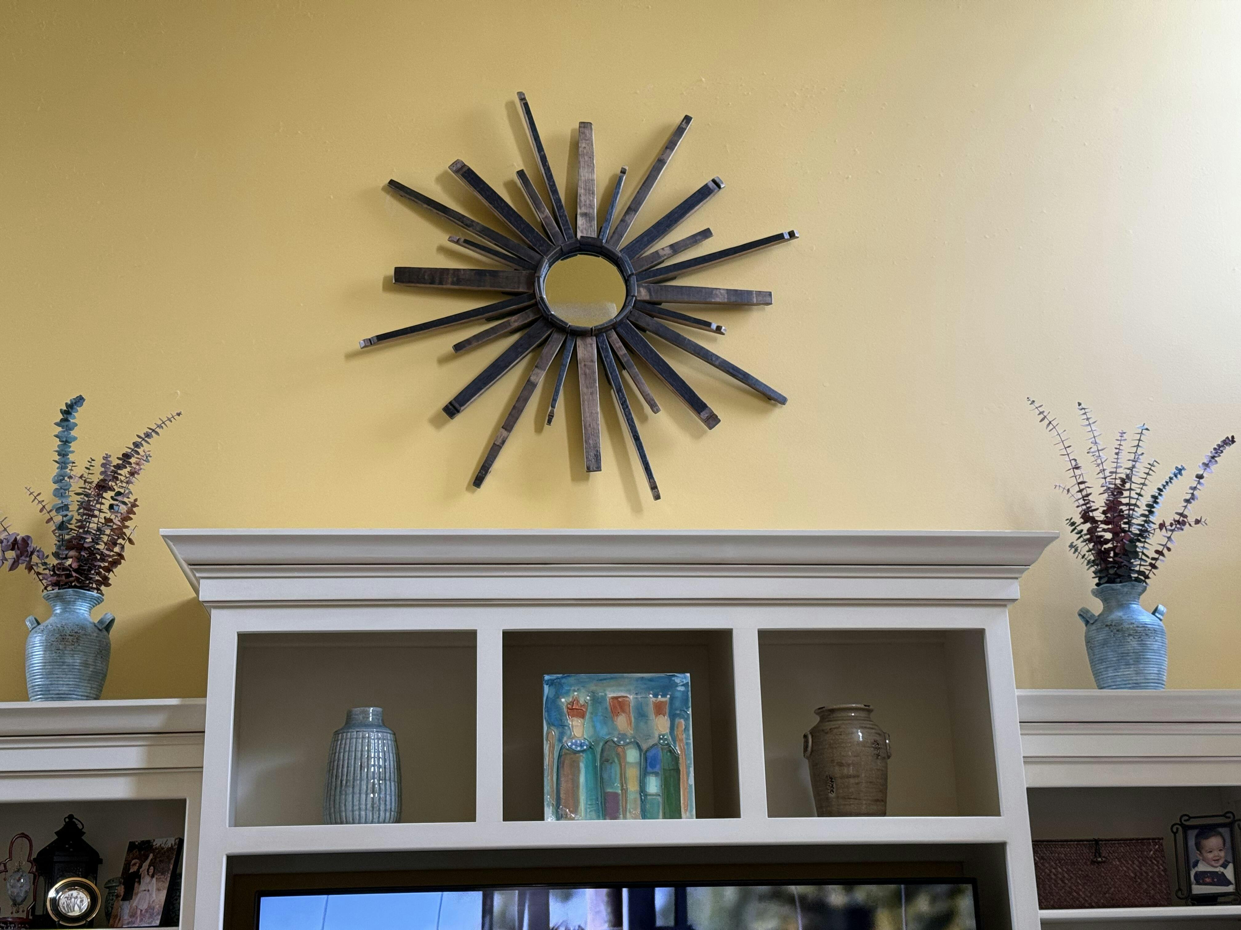 Designed in a charming sunburst style, with alternating and staggered lengths of unique, genuine Pappy Van Winkle Bourbon Barrel staves, the mirror reflects complexity, depth, and movement. Displaying the beauty hidden within the barrel, the Staveburst Mirror has an Art Deco vibe that incorporates the barrel staves in a gorgeous mid-century modern-inspired design.